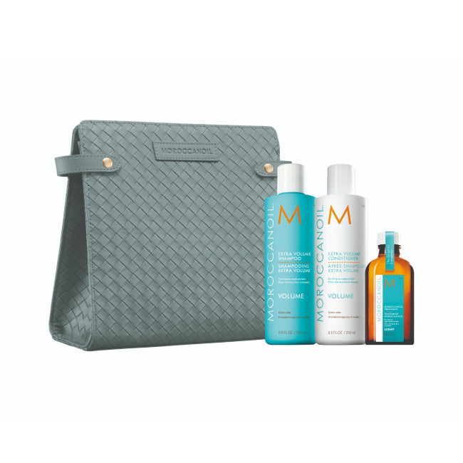 Poskrbite, da bodo vaši lasje polni življenja in volumna z omejeno izdajo Moroccanoil Holiday Set 2025 Volume, popolnim prazničnim kompletom za tanke, fine in brezvolumenske lase.